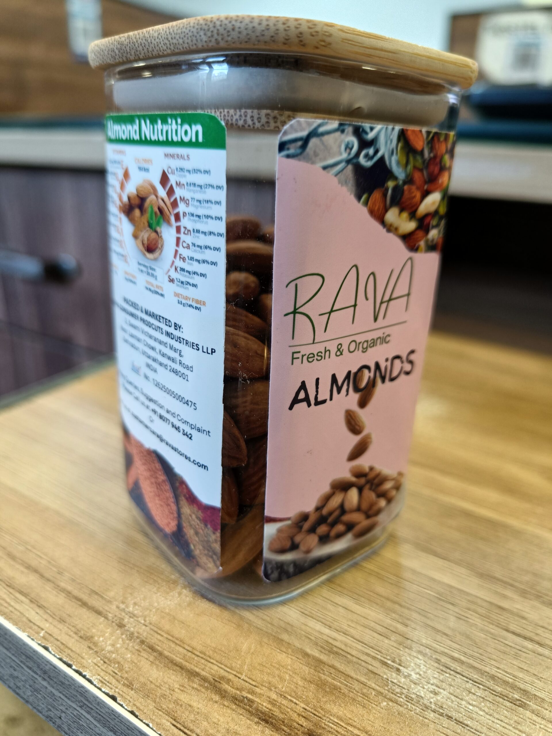 - 100% Natural California Almonds: RAVA almonds are sourced from the best Californian farms, offering you high-quality, 100% natural nuts with no additives, preservatives, or artificial ingredients.